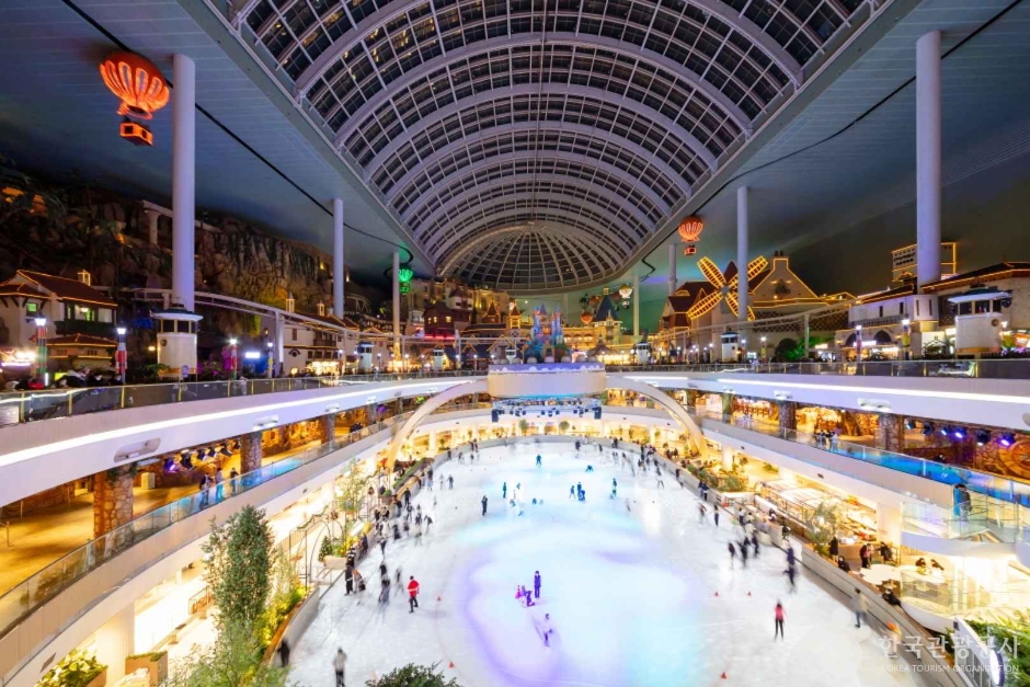 Lotte World Indoor Ice Skating Rink, located on B3 of Lotte World, is an indoor ice skating rink that is open all year round. Its modern interior design is in harmony with the surrounding facilities, offering a pleasant environment enjoyable with friends and loved ones. Despite its location underground, natural light pours in from the glass dome roof of Lotte World Adventure, giving a feel of outdoor skating. The skating rink is surrounded by 400 spectator seats where visitors can relax. The skating rink also has a variety of restaurants and a game arcade to enjoy when taking a break from skating.