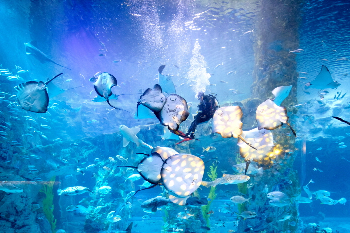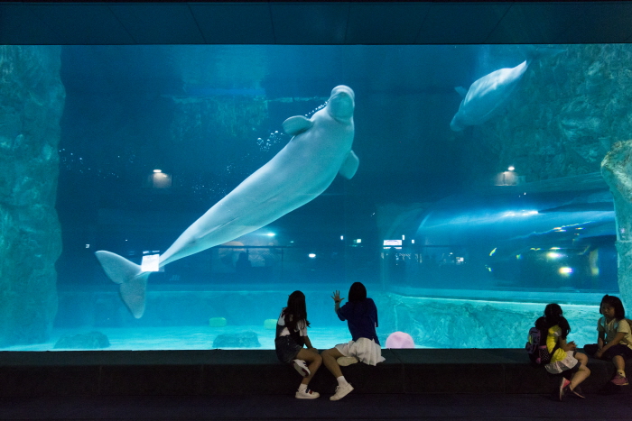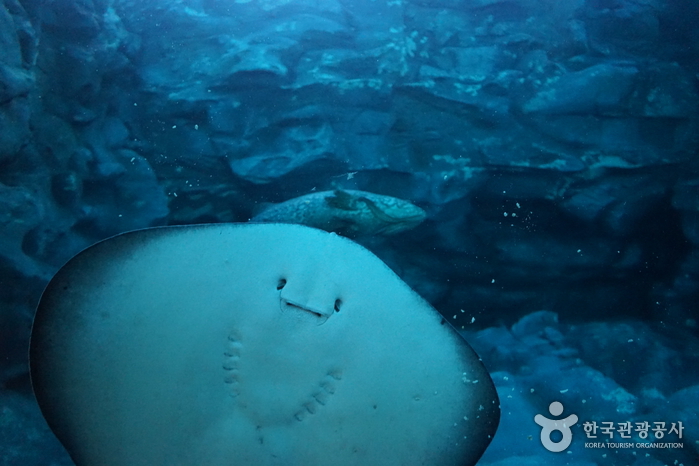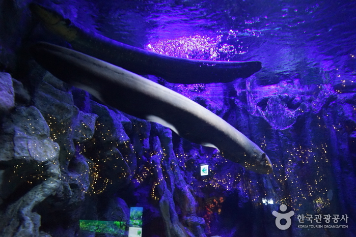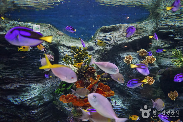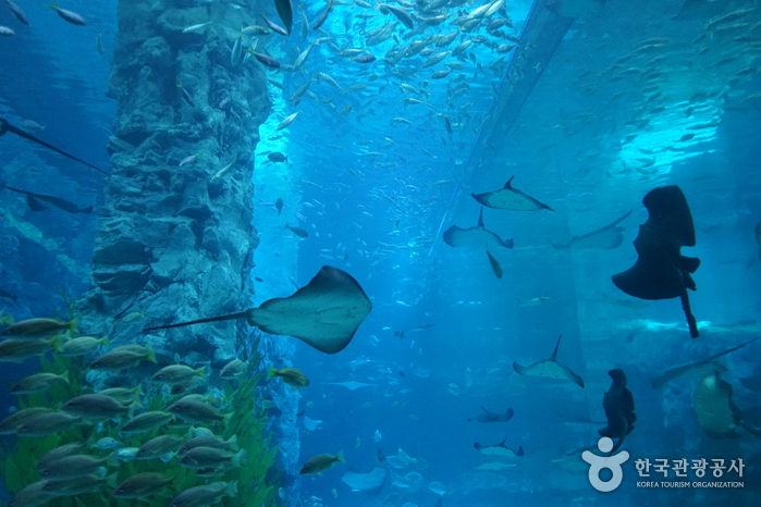 Lotte World Aquarium, located in Lotte World Mall, is an aquarium that replicates the marine ecosystems of the world’s five oceans. It exhibits over 55,000 marine animals of 650 species. It features a Marine Eco Hall, an Amazon River Hall, and a Penguin Hall. Visitors can participate in various programs such as feeding sessions for different animals including penguins and jellyfish touch experiences, allowing them to get up close with marine life.