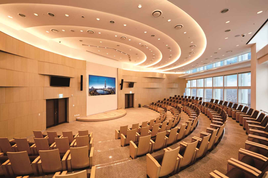 Visitors looking for refreshments can enjoy the one-of-a-kind menu served at the dessert cafe Sky Friends Cafe on level 119, or refreshing wine sold at the premium lounge on floor 123. This cozy space is the highest lounge in Seoul and is perfect for taking in the view in a relaxing ambiance.