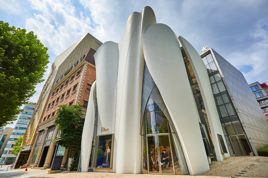 The street from the Cheongdam Station intersection to Galleria Department Store is lined with luxury brand stores and dubbed as “Cheongdam Fashion Street.” Often frequented by celebrities, the area became a popular tourist destination for hallyu fans. Inside the alleys are famous restaurants, and with art galleries and boutiques popping up within the area, the street has gained a reputation as a cultural shopping street.