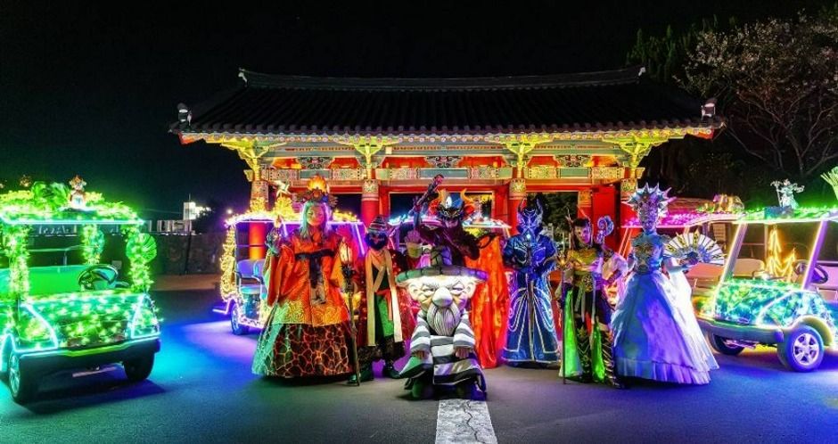 Lumiverse: Island of Light is an evening theme park set in a Jeju folk village as a local-hip cultural entertainment attraction. A gigantic multimedia show and characters inspired by Jeju’s folklore bring the night alive. The attraction’s name is a portmanteau of “Lumi,” wich means light in Latin, and “-verse” from the word “univserse,” and is a brand that aims to recreate Jeju’s mythical world with lights and arts. Visitors are invited to enjoy the evening with Jeju’s mythical gods and goddesses, including the legendary guardian goddess Elderly Mago. The attraction is divided into seven illuminated themed zones, each focusing on one of the seven gods and goddesses. Each theme is decorated using lights, artworks, sound effects and narratives that are sure to enchant one’s mind.