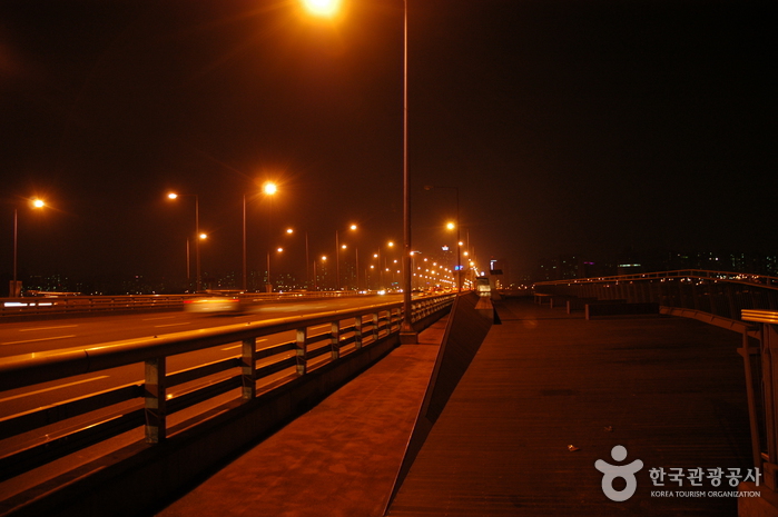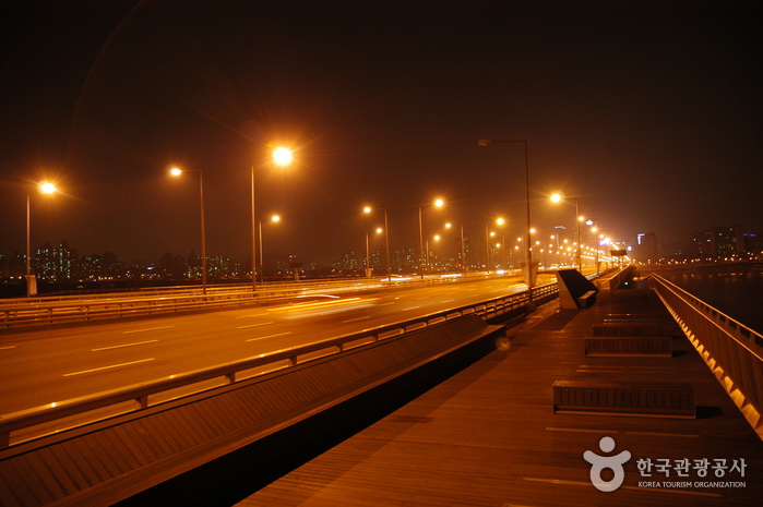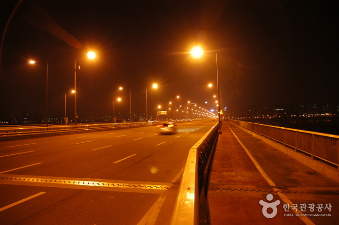 Mapodaegyo Bridge connects Yonggang-dong, Mapo-gu and Yeouido-dong, Yeongdeungpo-gu. The bridge is 1,400 meters long and 25 meters wide (6-lane road), and was the fourth bridge to be built over the Hangang River, following the construction of Hannam Bridge. The construction of the bridge first started in February of 1968 and was completed in May of 1970. At the time of its completion the bridge was named Seouldaegyo Bridge, but was later changed to Mapodaegyo Bridge in 1984.