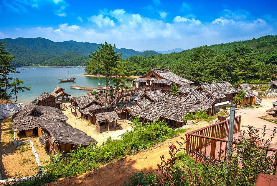 Maritime Filming Location is a film set that offers a glimpse into the lifestyle and culture of the Gaya, a Korean dynastic state. Set against a coastal backdrop, the site features an ironworks, illustrating the historic process of refining iron ore for weaponry, a quay, a market street, twenty-five wooden buildings, and three ships. It is known as the filming location for Korean TV dramas such as “The Rebel,” “Kim Suro,” and “Six Flying Dragons.”
