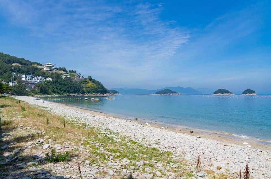 Museulmokhaebyeon Beach is not only a site of great victory achieved by Admiral Yi Sun-sin but also a tranquil beach with a beautiful seaside pine forest, which makes it ideal as a place to take a leisurely walk in. This pebble beach is also a part of the Namdo Seaside Trail and Yeosu Gaetga-gil Trail Course 2. When the tides recede, a white sand beach is revealed, showing a different side to this magical beach. Museulmokhaebyeon Beach is a beloved sunrise spot that draws a large crowd on the first day of the year, while photographers flock to the beach throughout the four seasons to capture the beautiful view. You can see the sculptures inspired by Yeosu seas within the pine forest, walk leisurely along the horizon, and enjoy the scenery of the wide sea dotted by islands. One can also find the Jeollanam-do Maritime & Fisheries Science Museum at the entrance to the beach, so there’s plenty of things to do in the surrounding areas as well.