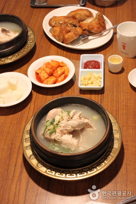 Tongdak set menu (Roasted chicken set menu), Yeongyang samgye tang (Nutritious ginseng chicken soup), Deulkkae samgye tang (Perilla seeds and ginseng chicken soup)