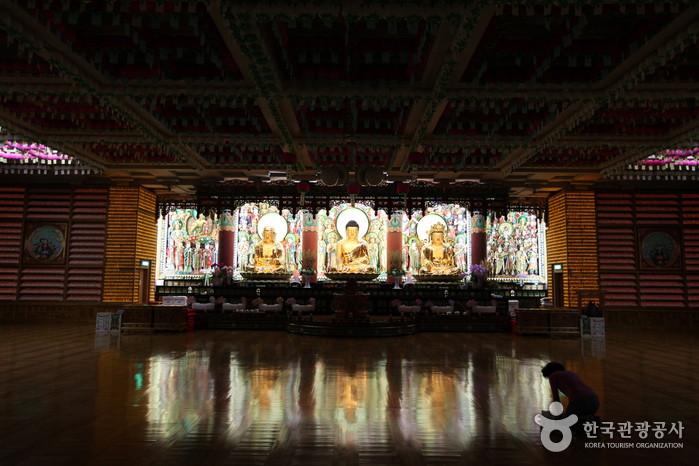 Nungin Sunwon, nestled at the base of Guryongsan Mountain, is named after another name of Buddha, Sakyamuni, signifying “the one who skillfully educates and benefits others.” This temple complex includes several key structures: the Daeungjeon Hall, the Dharma Hall, the Gwaneumjeon Hall, and the resplendent Great Bhaisajyaguru, known for its golden glow. Additionally, the site houses a Buddhist university, providing a range of programs that cover basic to advanced Buddhist studies.