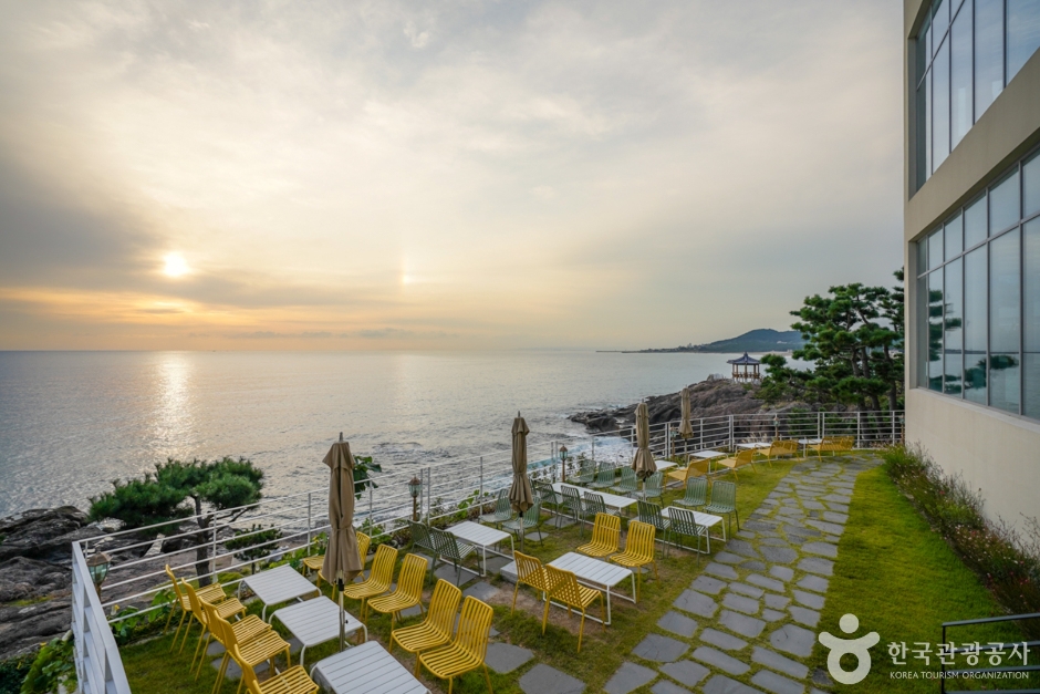 Odin is a spacious café located near Hwajin Beach in Pohang, known for its stunning view of the East Sea, made possible by its large windows. The café’s signature offering is the Odin Cream Latte, a unique blend topped with cream cheese and custard cream. Its desserts, incorporating local ingredients like chives and apricots, add to the café’s charm. Situated right in front of the café is Mongdol Beach, along with trails perfect for a relaxing stroll after enjoying your meal.