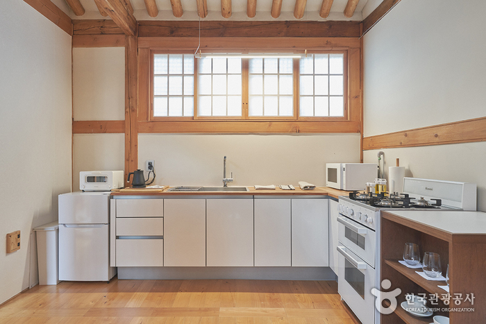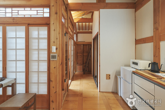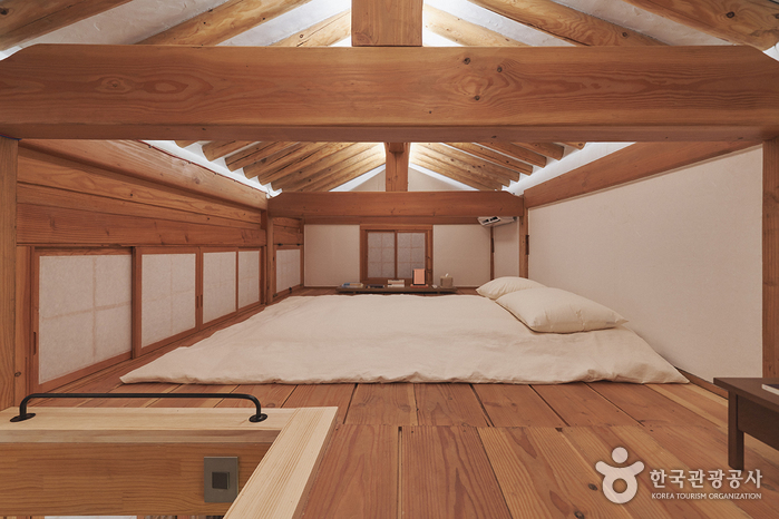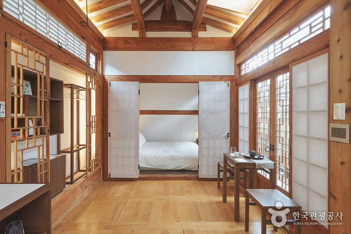 Soso House is a private hanok stay located in Seochon, Jongno-gu, Seoul. Once you enter the gate, you are greeted by a small yard paved with stones and an alpine apple tree. There is a stool on one side of the yard where you can enjoy a cup of tea on a sunny day. In the daecheong maru (wooden-floored hall, there is a master bedroom on one side and a kitchen on the other, and the master bedroom has an attic. Cooking is allowed, and complimentary breakfast includes toast, salad, and coffee, as well as complimentary homemade fruit syrup and tea bags. Gyeongbokgung Palace, Seoul Museum of History, and Park No-Soo Art Museum are all within walking distance.