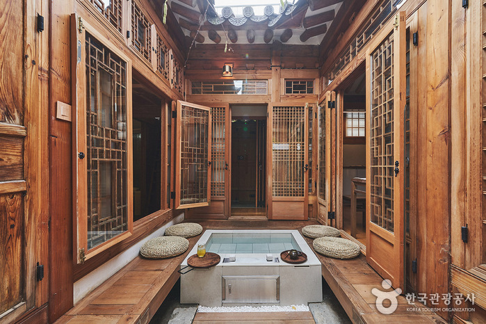 Nuhadang is a traditional hanok with over 100 years of history. It is located in a quiet spot in Seochon, Jongno-gu, Seoul, where many scholars and artists have lived since Joseon times. Rooms are wallpapered with eco-friendly Korean paper, and thick cotton blankets and cypress pillows will sooth travelers’ fatigue. In the yard and small garden you can experience traditional Korean culture: janggu drumming, the game of yunnori, and Hanbok clothing. Walking the streets of Seochon – past Yun Dong-ju’s hostel, Park No-su’s art museum, and Lee Sang’s house –  you can still feel the atmosphere of old Seoul.