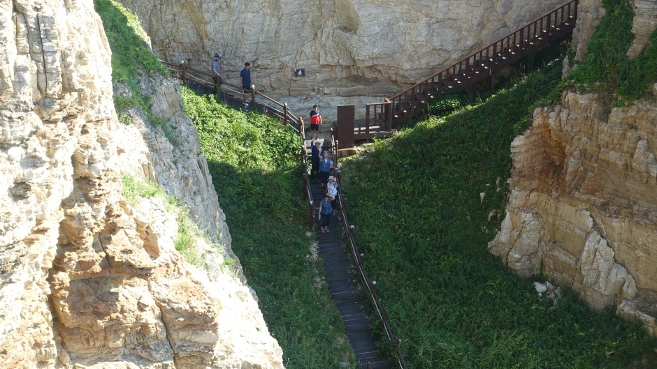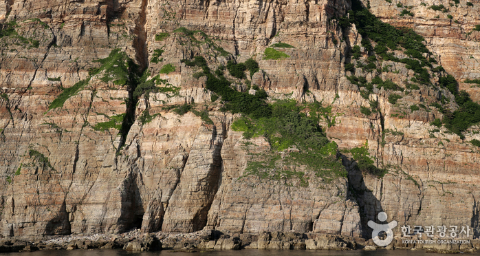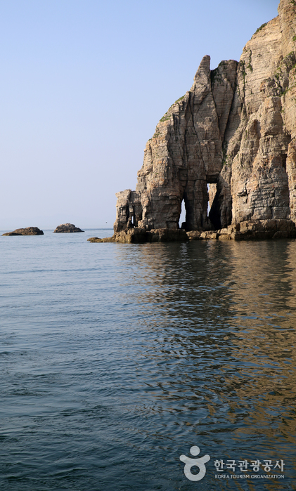 Dumujin, known for the most beautiful coastal scenery on Baengnyeongdo Island, is situated in the northwest of the island. Its picturesque coastal cliffs and vibrant rock formations, shaped by years of wave action, have earned it the nickname “Geumgangsan Mountain on the sea.” Visitors can enjoy Dumujin from the sea aboard a cruise ship, or explore it on land by taking the Dumujin port road.