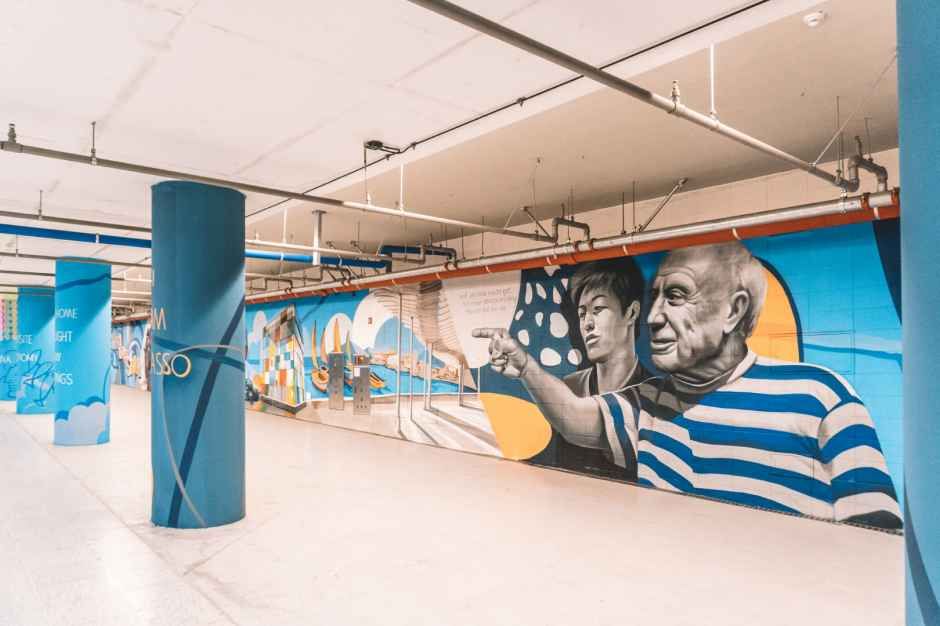 The underground public pedestrian passage connecting Express Bus Terminal Station and Banpo Hangang Park has been planned as a street gallery for all citizens who love Seoul. In particular, the Picasso Mural created in collaboration with the Spanish Tourism Board, Malaga Tourism Board, and Seocho-gu Office is a 65-meter mural showcasing various aspects of Spain’s Malaga and Seoul through the eyes of Picasso, including architecture, food, tradition, and daily life. The artist who painted this mural is Eduardo Luque, also known as Lalone, a world-renowned graffiti artist and the winner of the European Urban Art Championship. A behind-the-scenes video of the mural’s creation and clips of Lalone at work are shown in the café-style rest area next to the mural.