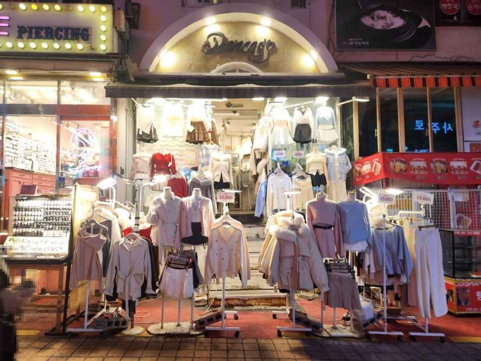 M Playground is a casual boutique brand known for its signature exterior design of blue shipping containers. The shop does its best to present the latest fashion trends and the hip, street vibe found exclusively in Hongdae. Most visitors range in age between teens and young adults in their 30s, looking for trending clothing, accessories, and other products.