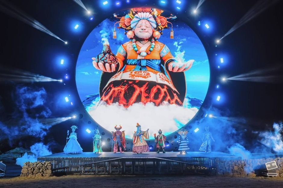 Lumiverse: Island of Light is an evening theme park set in a Jeju folk village as a local-hip cultural entertainment attraction. A gigantic multimedia show and characters inspired by Jeju’s folklore bring the night alive. The attraction’s name is a portmanteau of “Lumi,” wich means light in Latin, and “-verse” from the word “univserse,” and is a brand that aims to recreate Jeju’s mythical world with lights and arts. Visitors are invited to enjoy the evening with Jeju’s mythical gods and goddesses, including the legendary guardian goddess Elderly Mago. The attraction is divided into seven illuminated themed zones, each focusing on one of the seven gods and goddesses. Each theme is decorated using lights, artworks, sound effects and narratives that are sure to enchant one’s mind.
