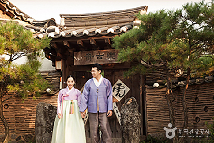 Rakgojae Bukchon Hanok Hotel in Jongru-gu, Seoul, is a traditional hanok compound with a 130-year history, renovated by master carpenter Jeong Yeong-jin. The elegant gate and stone walls, the traditional roof tiles, the jangdokdae jar store, the pavilions and ponds – not to mention the beautiful pine trees – express the archetypal beauty of hanok. Sitting on the daecheongmaru (wooden patio) with a breeze in the trees, guests will feel taken back in time. Guestrooms are clean and comfortable, and visitors can relax in a wood-fired red-clay sauna and a jade-covered ondol room,. Traditional culture programs are available.