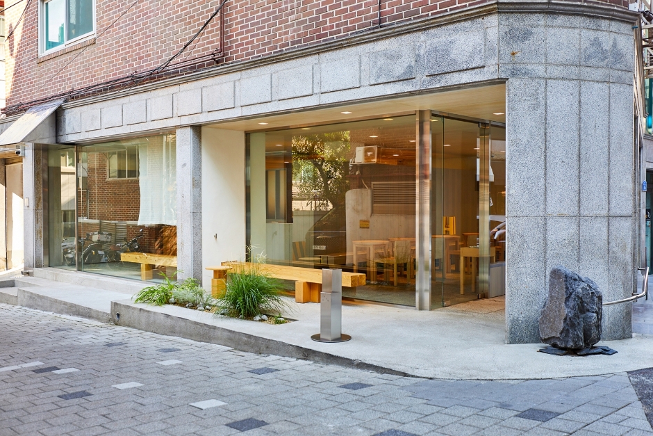 Aeum is a fusion and traditional dessert cafe in a quiet alley between Sogang University and Hongik University in Seoul. Wooden interiors with muted colors create a neat atmosphere, and there are no signboards or menus on the outside or inside, so visitors can enjoy drinks and desserts in a quiet and relaxing setting. Coffee drinks, including pour-over coffee, are available, and there are many desserts as it’s a traditional dessert cafe. The cafe also created a new dessert menu to cater to today’s tastes after launching a pop-up store.