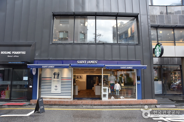 Saint James Boutique Seoul, opened in November 2013 near Garosu-gil, Gangnam-gu, Seoul and is well known to Seoulites for its marine styling. The store sells women’s, men’s and children’s wear, plus shoes, hats, bags and accessories. Featured brands are SAINT JAMES (France), BUDDY (Japan), VEJA (France), SOLUDOS (USA), BRONTE (Netherlands), INFIELDER DESIGN (Japan), LAVENHAM (UK), and ROCKY MOUNTAIN FEATHERBED (Japan).