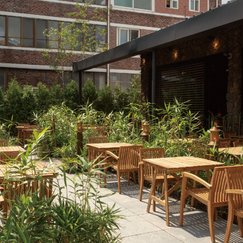 Yeonmujang-gil in Seongsu-dong, known for old factories and a shoe workshop street, has been reborn as a place of trendy cafes and culture. The energy of car repair shops, printing factories, and handmade shoes street still exist today but, as global restaurant brands, select shops, and cafes have set up amidst busily operating factories, an atmosphere unique to Seongsu-dong has been created. “Daerim Warehouse” led to the change in the Seongsu-dong streets and can be said to be the originator of all warehouse-style cafes that are popular throughout Cafe Street today. The red-brick structure, antique signboards, and a vast indoor space of an old warehouse have been maintained and, with the addition of a sensuous interior design, it has become a space suitable for fashion shows and exhibits, thus showing new potential for old Seongsu-dong architecture. Every day, new cafes, bakeries, restaurants, and cultural complexes open their doors and are busy welcoming visitors.