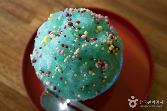 Boobing is short for “Buam-dong bingsu” (shaved ice). As such, it is a shaved ice restaurant that always has a long waiting line on weekdays or weekends. The main menu item is pat bingsu (shaved ice with red beans), made with red beans that are provided by a bean produce. They also serve their own original bingsu desserts that use ingredients like melon, mint chocolate, and gold pineapple. Their signature menu is Chodang corn bingsu, made with finely ground corn with milk ice on top. The cafe has a one bingsu order per person policy.