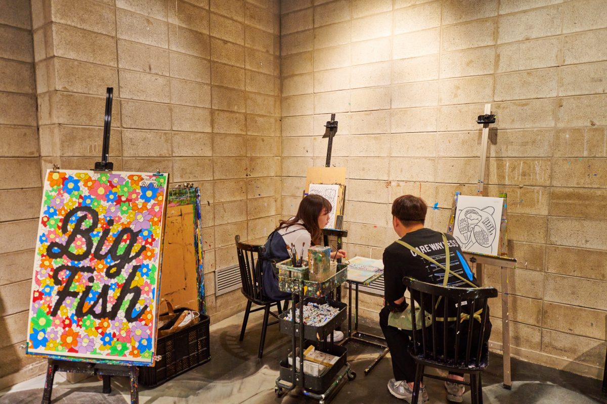 This is a canvas drawing cafe where Yuna of ITZY visited and experienced art. It is decorated as a cultural living space where you can draw and color. Drawing tools such as sketches, acrylic paints, and brushes are provided. It is also interesting that there is a mobile phone holder so that you can capture your drawing as a time-lapse.
