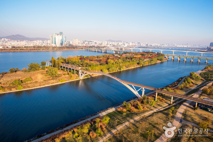 Situated on the southern part of the Hangang River, Yanghwa Hangang Park stretches between the mouth of Yeouido Saetgang Tributary and the Gayang Bridge in Gangseo-gu, Seoul. This spacious park is lush with vegetation and offers a spectacular view of the river.
