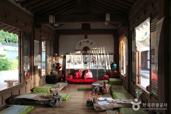 It is divided into the Haerin-gwan (a space for people to get acquainted with each other), the Traditional Theater, and three annex buildings (Munhyang-ru, Nokeum-jeong and Cheongwu-jeong). At Haerin-gwan, you can enjoy traditional music at Garak-dang and try traditional food at Sohwa-dang. In the square of Garak-dang you can view a traditional wedding (on the weekends) or people playing folk games. Also, at the Traditional Theater, about 156 seats are available, and in the afternoons Human Cultural Assets or members of the National Center for Korean Traditional Performing Arts and the National Corps members present traditional music and dances. Sinayui, Salpuri, Pansori, the Drum Dance and the Bongsan Mask Dance are the most popular programs for foreigners. The programs are all explained in English and Japanese.