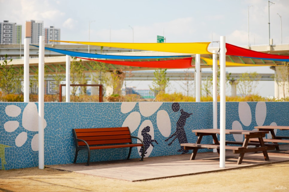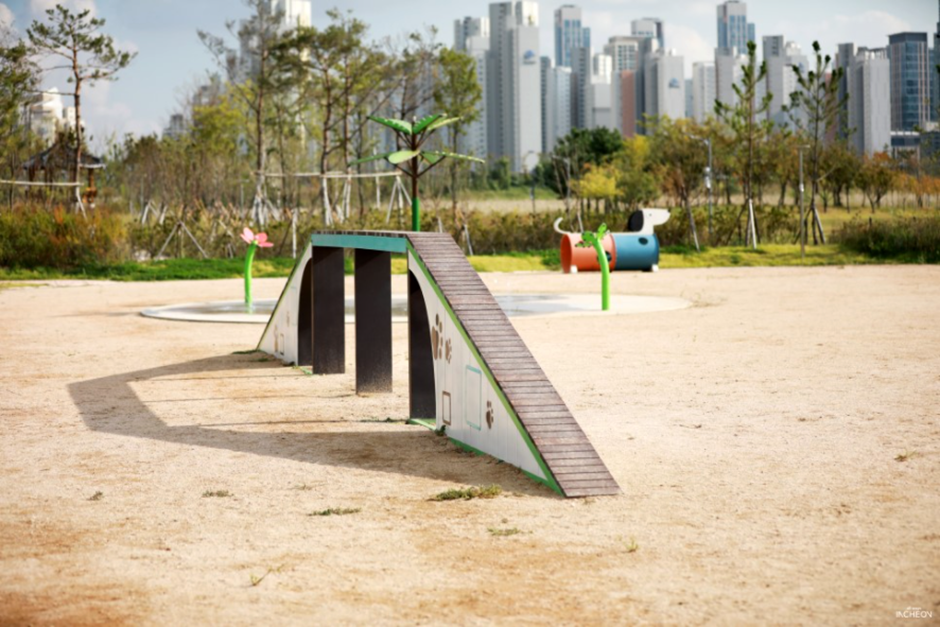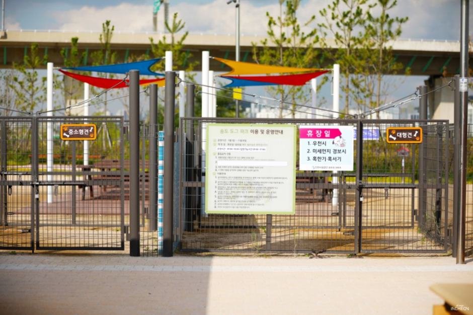 Songdo Dog Park, located within Songdo-dong Dalbit Festival Park, is a free pet playground open to all pets who are up-to-date on their vaccinations and are microchipped. Owers of pets that are not microchipped must have their pet registration paperwork on hand to enter. The park is divided into three sections based on dog size for safety.