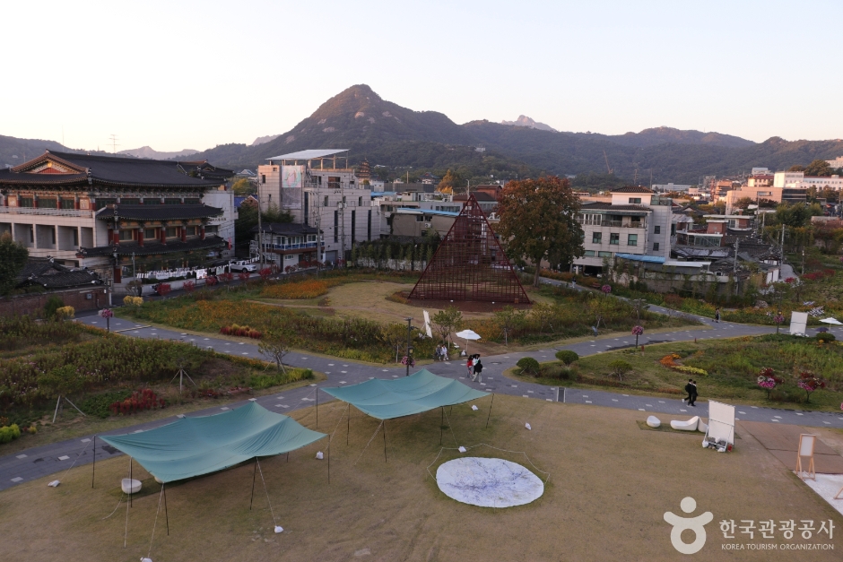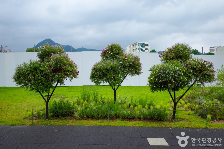 Songhyeon Green Plaza, located between Gyeongbokgung Palace and Jongno, is a space for culture and rest. The site was formerly used as housing for Shiksan Bank during Japanese rule. After Korea’s liberation, it served as a residence for the US Embassy and military personnel. Later in 1997, it was returned to the Korean government but remained unused for years. In 2022, the ownership was transferred to the Korean House and Land Corporation and then to the Seoul Metropolitan Government, which redeveloped it into a green plaza and opened it to the public. Upon entering the plaza, visitors are greeted by a spacious lawn adorned with flowers during the blooming season. The plaza is connected to the nearby tourist attractions through shortcuts cutting through it, including Cheong Wa Dae (Blue House), Gwanghwamun Plaza, Insa-dong, and Bukchon Hanok Village.