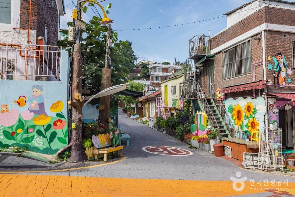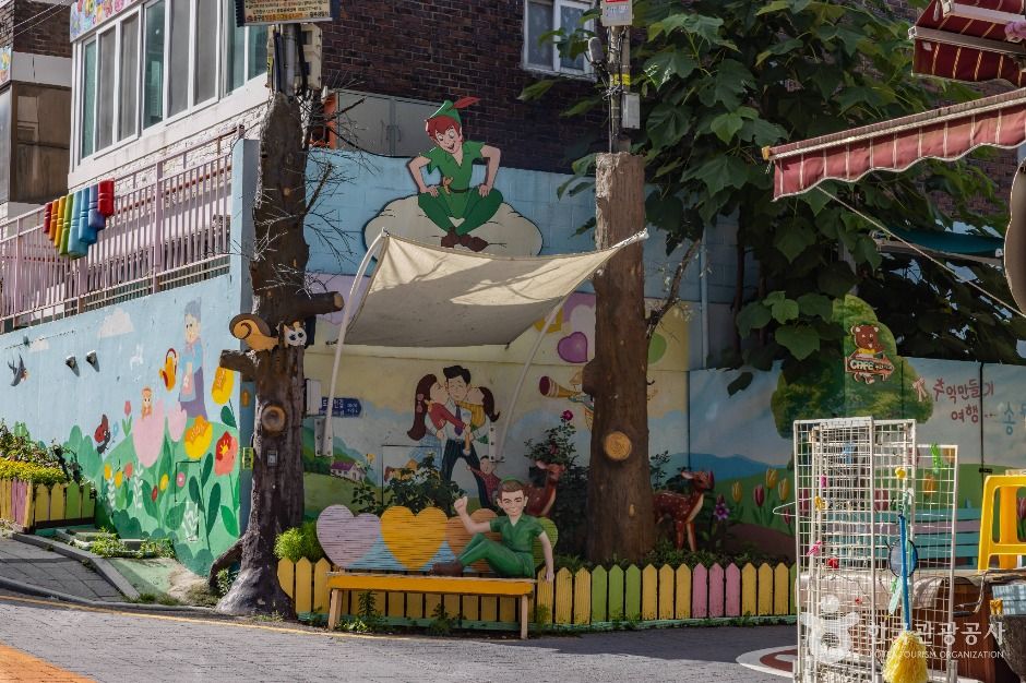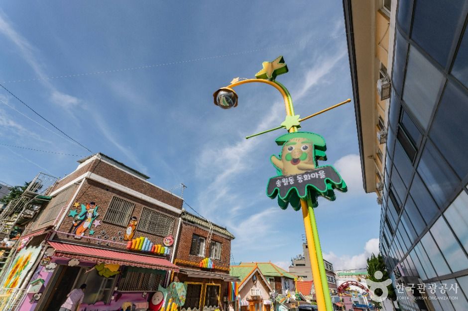 Songwol-dong was named for its view of the moon between the pine forest. The opening of Incheon Port in 1883 led to the start of many foreigners coming into the area for settlement, and it turned into a rich village. However, young people gradually moved out, leaving the village in a state of stagnation. As such, a renovation project was brought about to improve the development of the village by decorating with murals and sculptures of classic fairy tales.