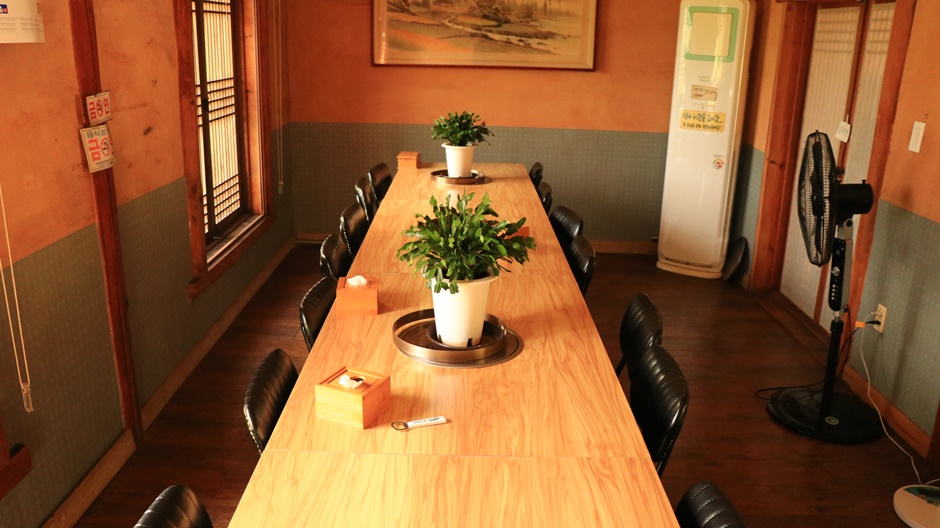Soryeongwon Supsok is a restaurant located in the Soryeongwon Forest, specializing in duck dishes. Oriroseu (grilled duck), one of their signature menu items, is a dish consisting of thinly sliced duck with its skin, grilled with salt and pepper. It is served with side dishes and accompaniements like potatoes, onions, and mushrooms. When ordering sotbap (pot rice) at this restaurant, visitors have the option to conclude their meal with either doenjang jjigae (soybean paste jjigae) or oritang (duck soup). Addtionally, the restaurant offers individual rooms where diners can enjoy a peaceful meal while appreciating the beautiful view outside.