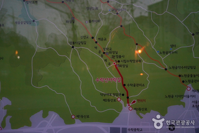 One of the most popular hiking courses on Suraksan Mountain is the one that starts from Danggogae Station (Seoul Subway Line 4) and passes Hangnimsa Temple and Yongguram Hermitage. In the springtime, the ridge between Suraksan Mountain and Buramsan Mountain is covered with gorgeous royal azalea blossoms.