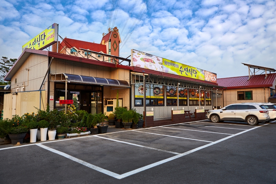 Jeolla-do is famous for its delicious food. At Suyeon Sikdang, you can taste a Jeolla-do-style set menu, served with plenty of side dishes that are homemade every morning. Gamasot baekban (set menu of rice cooked in a cast-iron pot) is served with rice cooked in a cast-iron pot along with 13 delicious side dishes, including braised bean curd, stir-fried mushrooms, bean sprout salad, and stir-fried anchovies, along with briquette-grilled bulgogi. Moreover, customers can order grilled mackerel for an additional 2,000 won per fish. In addition to the set menu, other menu items include healthy gamasot galnaktang (short rib and octopus soup), sondubu jjigae (soft bean curd jjigae), and gamasot cheonggukjang (rich soybean paste jjigae), all cooked in a cast-iron pot for a deep, savory flavor.