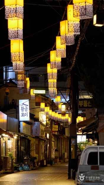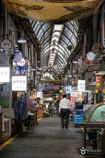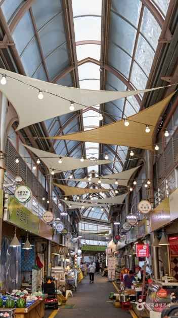 Tongin Market dates back to June 1941, as a public market set up for Japanese residents near the Hyoja-dong neighborhood when Korea was still under Japanese rule. After the Korean War, the nation experienced a swift rise in population, which led to a natural increase in consumption and demand. As a result the area’s street vendors and stores used the former Tongin Market area as their marketplace. Now, Tongin Market consists of 75 stores, most of which are restaurants and grocery stores. There are also some shops selling manufactured goods like underwear and shoes.