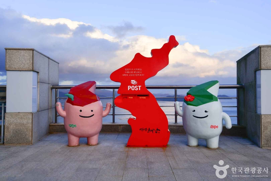 Ttangkkeut Tower is a triangle monument commemorating the southernmost tip of the Korean peninsula. The Skywalk was remodeled using glass material with the theme of “taking one step beyond the end of the land,” symbolizing the end the beginning of the Korean peninsula. The skywalk made with transparent glass panels, offers visitors the thrill of walking above the sea. The installed photo booth provides visitors a chance to click great pictures with the vast blue sea in the background on one side and the Ttangkkeut Tower on another. It is also renowned for stunning sunset views.