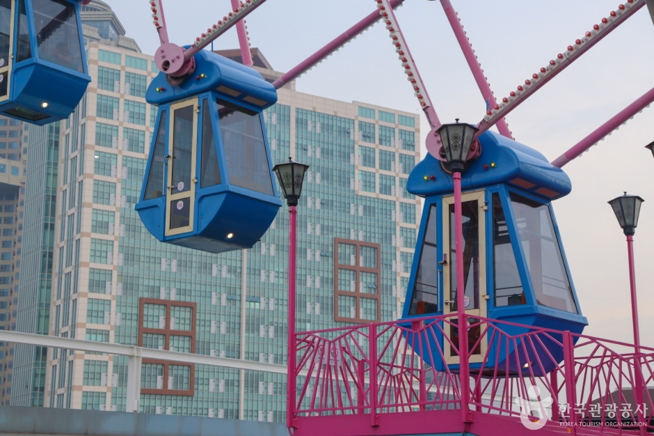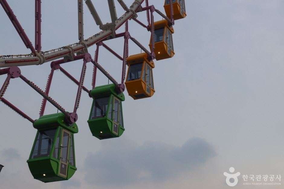 The Ulsan Lotte Grand Wheel is located on the 7th floor of Lotte Young Plaza next to Ulsan Express Bus Terminal. The Ferris wheel offers a 20-minute ride with panoramic views of Ulsan, with options for a general cabin or a crystal cabin, making it a popular attraction among both tourists and shoppers.