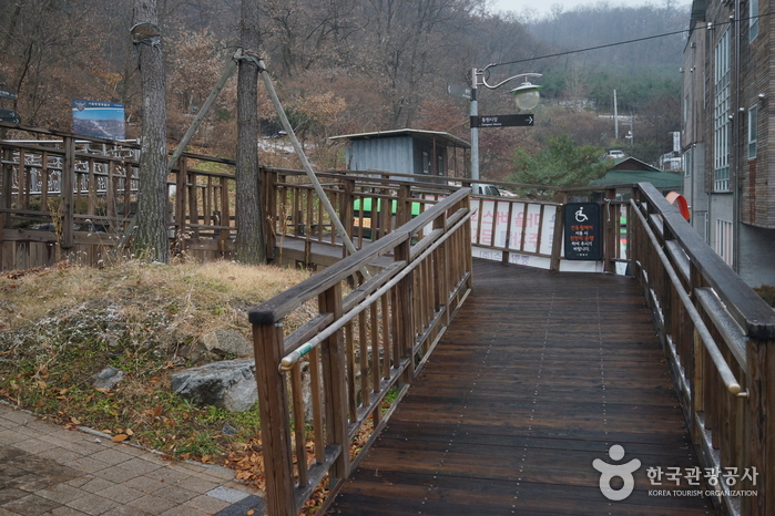 Yongma Falls Park is situated on the mid-slope of Yongmasan Mountain, established following the closure of an aggregate collection plant. The park showcases three artificial waterfalls: Cheongnyongpokpo Falls, Baengmapokpo Falls, and Yongmapokpo Falls. Each waterfall comprises two tiers, with x_heights ranging from 21m to 51.4m. The park is equipped with various amenities, including ponds, tennis courts, soccer fields, a wildflower garden, walking trails, and a barefoot walking trail.